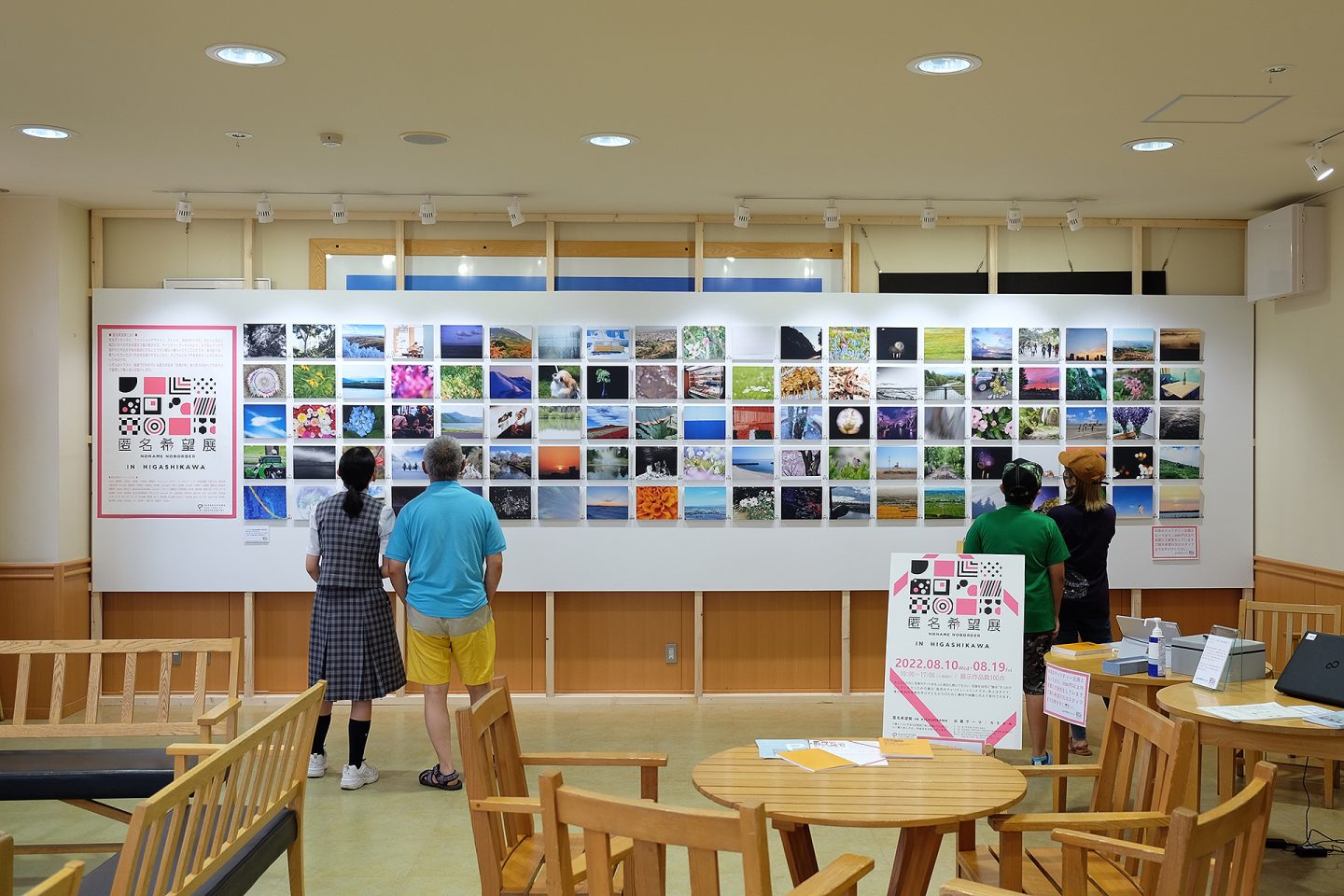 TITLE 匿名希望展 in HIGASHIKAWA Type EVENT/HOKKAIDO Client 東川町写真の町課 Year 2022.08 DIVISION SPACEINTERIORGRAPHICPLANNINGFOOD - DIVISION SPACEINTERIORGRAPHICPLANNINGFOOD 写真の町・北海道東川町で開催した匿名希望展 in HIGASHIKAWA ジョージクリエイティブカンパニーが主催するチャリティーアートイベント「匿名希望展」を、北海道東川町が主催し、ジョージクリエイティブカンパニー匿名希望展実行委員会がサポートという形で2022年8月10日(水)~8月19日(金)に開催しました。 展示する作品は写真のまちにちなみ、全ての作品が写真作品のみでの開催となりました。 写真家をはじめ、スポーツ選手、東川町民の方々の作品、100作品を展示しました。