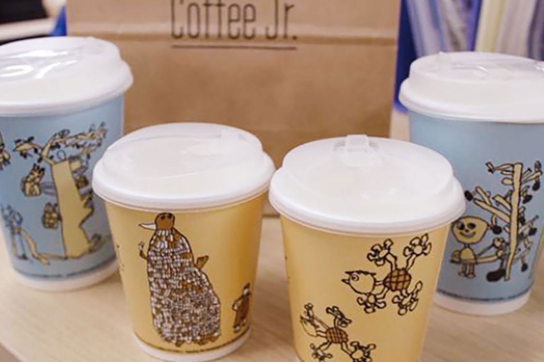 TITLE Coffee Jr. MACHIDA Type SHOP/TOKYO Client (株) JR東日本リテールネット Year 2015.2 DIVISION SPACEINTERIORGRAPHICPLANNINGFOOD - DIVISION SPACEINTERIORGRAPHICPLANNINGFOOD 人が行き交う駅にほっと一息できるコーヒースタンドを。 JR町田駅中央改札口の使われていなかった自動券売機の跡地に突如オープンした「Coffee Jr. MACHIDA (コーヒージュニア町田)」駅の改札口前に「いい違和感」を狙ってショップデザインしました。カップのデザインは、地元の幼稚園児のみなさんが描いた絵を使わせていただき、お客様を和ませ大人気となりました。 地元の幼稚園児のみなさんが描いた絵を元にデザインされた、大人気のコーヒーカップ。