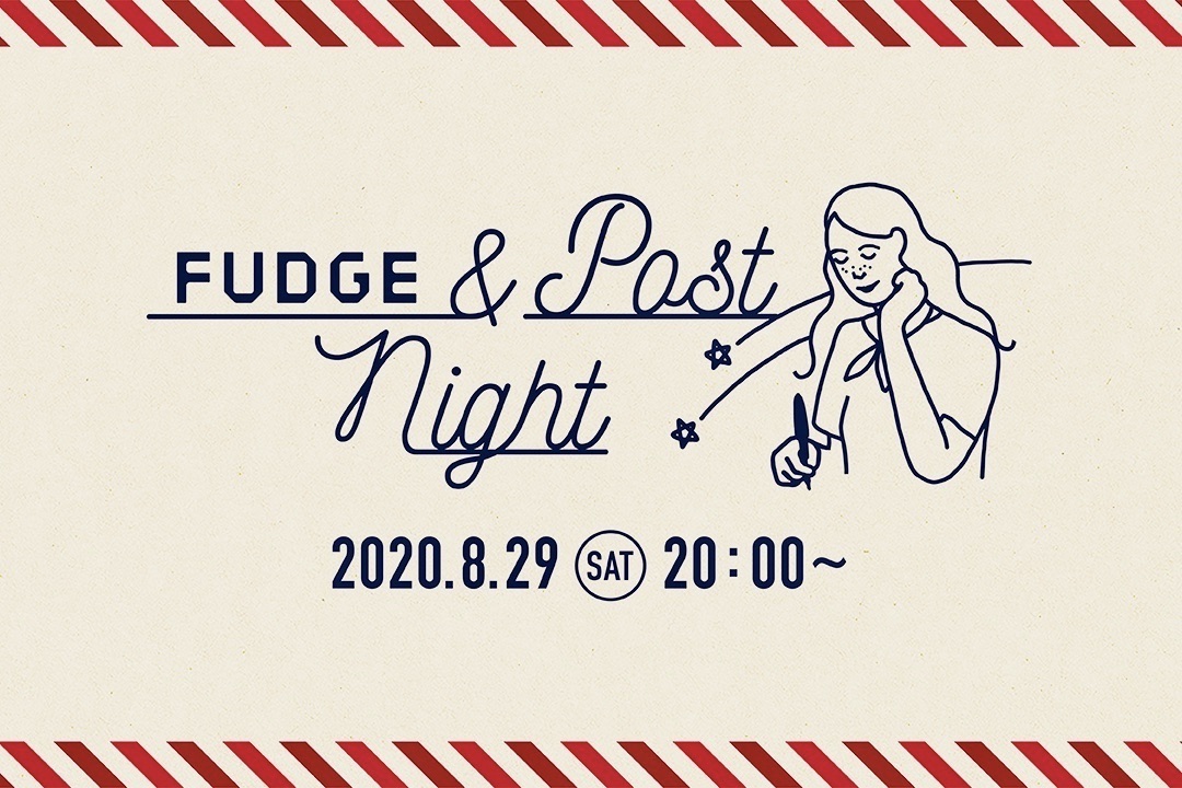 TITLE FUDGE & Post Night Type EVENT/ONLINE Client 日本郵便株式会社 Year 2020.8 DIVISION SPACEINTERIORGRAPHICPLANNINGFOOD - DIVISION SPACEINTERIORGRAPHICPLANNINGFOOD 手紙の可能性を探る &Postプロジェクトの生配信オンラインイベント 日本郵便株式会社が展開する、手紙を通してコミュニケーションすることの価値を見直し、新たな可能性を探る「&Post」プロジェクトが雑誌FUDGEとのコラボレーションによる、生配信オンラインイベントが開催されました。イラストレーターのmoekoさんを起用し、メロウでゆったりとしたビジュアルデザインを展開しました。